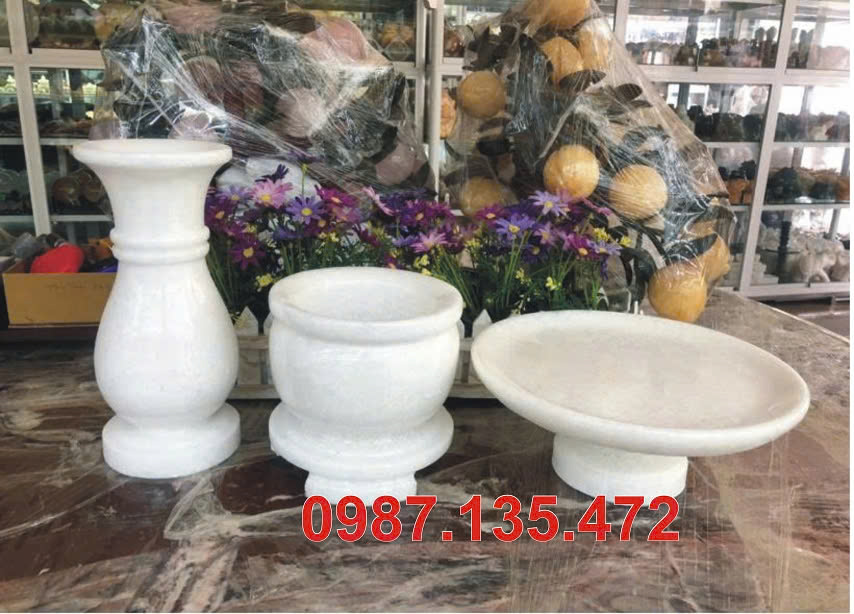 Bát hương đá trắng tinh khiết.