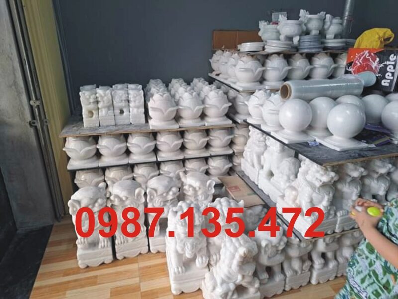 · Chất liệu: Đá cẩm thạch trắng tự nhiên, cứng, bền, chịu thời tiết tốt.